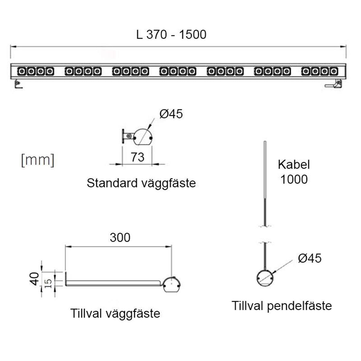 Egenskaper Tunable White 2700K – 5700K Highpower LED, CRI typ 85 Fem olika optiker, smal till superoval Dimbar DALI / DMX Diktmonterad / väggfäste / pendlad Bilder