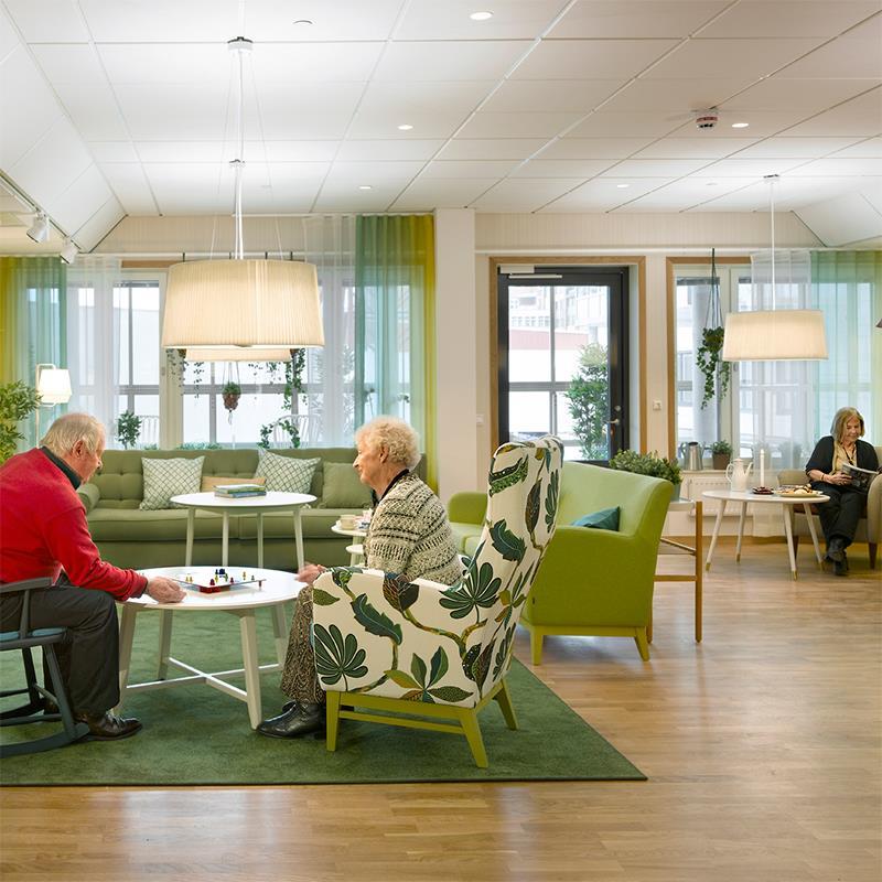 Ljusmängd och färgtemperatur varierar över dagen, vilket ger de boende stabilare dygnsrytm och rutiner och även bidrar till en förbättrad sömn.
